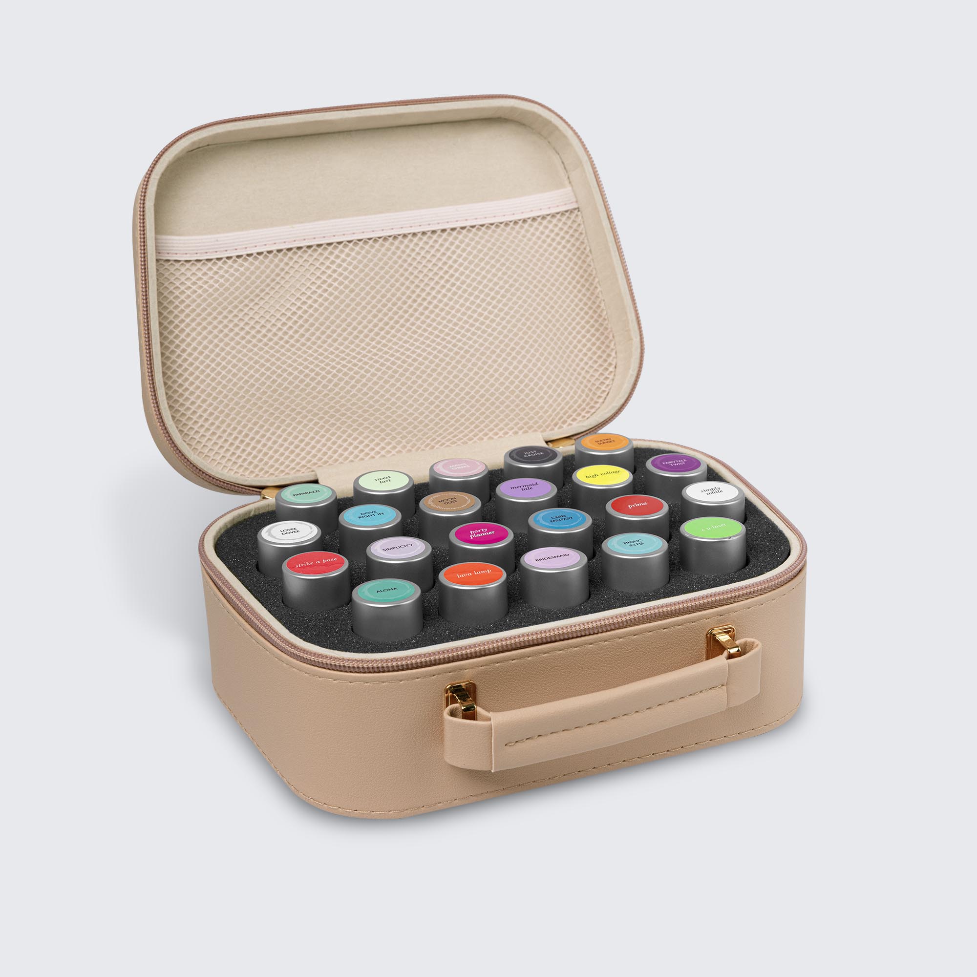 Small foam insert holds up to 22 polish bottles.